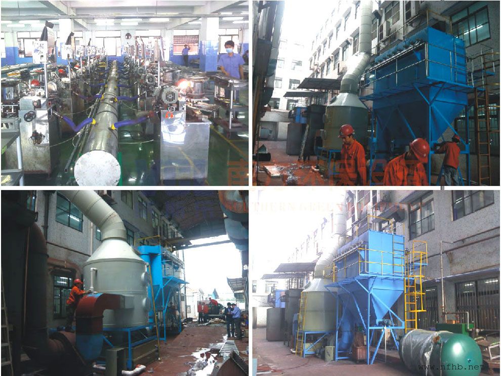 中山市南方环保工程设备公司针对切削车间132台磁芯元件切削设备产生的大量铁粉粉尘,结合治理同类粉尘废气的成功经验,治理方案准遵循“运行经济实用、管理操作方便”的原则,选用成熟高效的NML过滤除尘工艺装置进行回收净化治理,现设计治理风量为32000m3/h。该废气治理后符合《大气污染物排放限值》污染物排放标准要求。